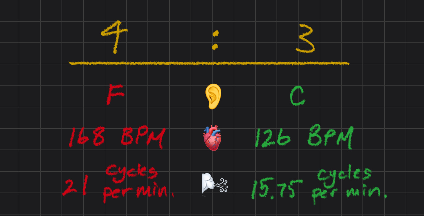 Back in that intro — the exact moment the tempo moves in a 4:3 ratio is the same moment that the chords move by a 4:3 ratio. The track goes from a sprint to a jog, from a flame thrower to a campfire, from 4th gear to 3rd — on two different levels of musical cognition at once. It feels so satisfying and natural and … harmonic. 🧬🙂